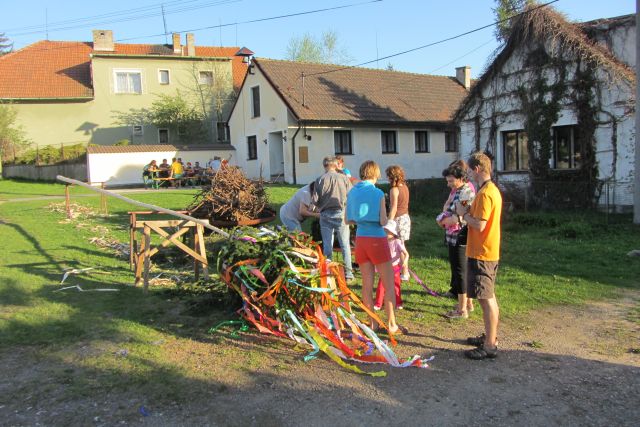 Pro májku se bylo v sobotu 28.4.2012 v lese u Uhrovic mlýna. Traktor poskytl p.L.Vávra. Po návratu se majka kompletně vyzdobila a jako řádní slatinští sousedé jsme pěkně poseděli.... Občerstvení poskytla obec.