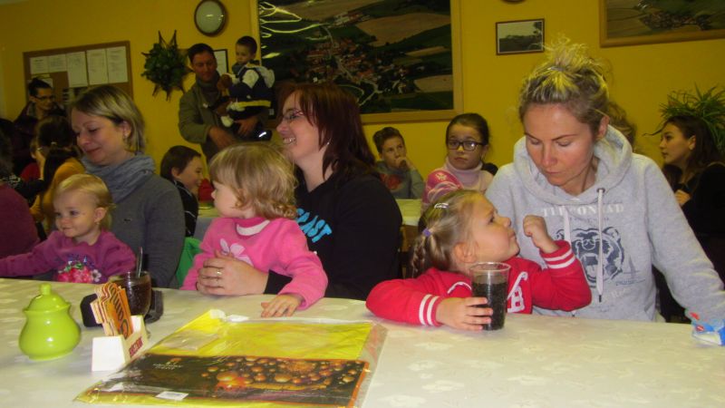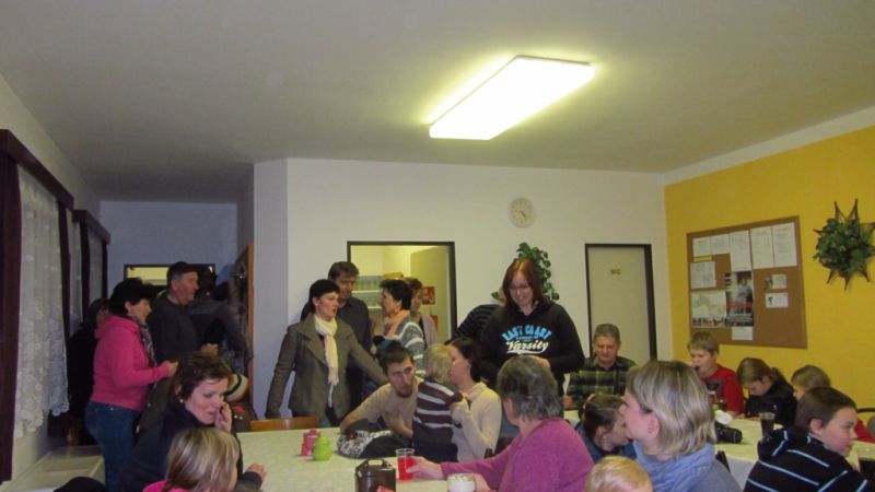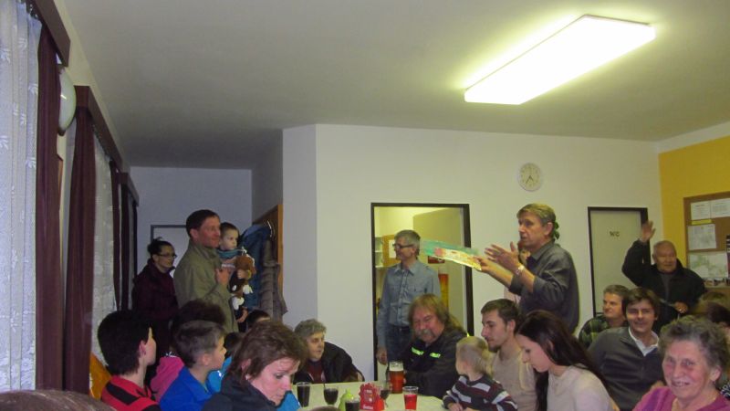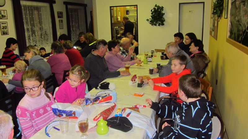 V sobotu 29.11.2014 se sešli v zasedací síni OÚ rodiče a prarodiče s dětmi na nadílce Mikuláše. Každé dítě dostalo nejdříve koláček s čajem a limonádou.