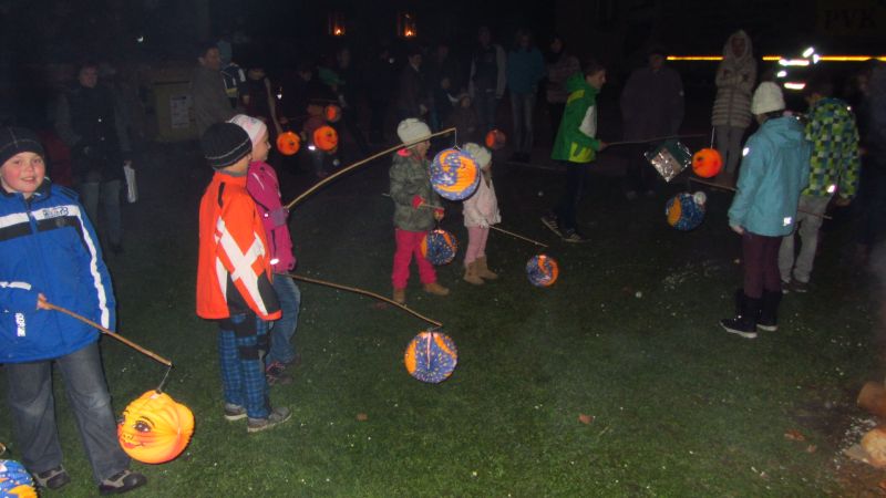 Potom přišel Mikuláš, čert a anděl, který přinesl dětem baličky s cukrovinkami. Ještě dostalo každé dítě lampionek. Ty jsme rozsvítili a šli v průvodu vesnicí až do parku, kde následovalo rozsvícení Vánočního stromu.Dohled nad námi měli místní hasiči. Při zpáteční cestě na obec byla zapálena hranice.