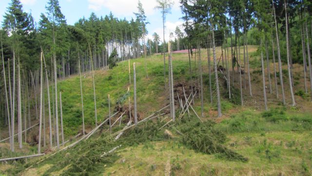 V obecním lese vichřice způsobila velký polom na cca 3 ha lesa. Škoda byla vyčíslena na několikatisícové škody.