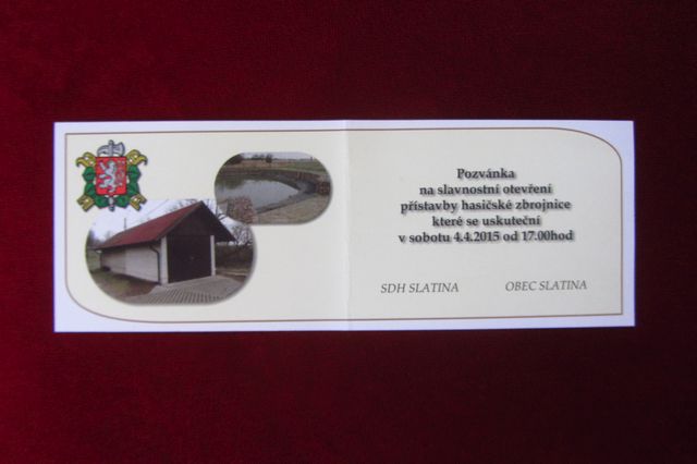 Dne 4.4.2015 byla slavnostně otevřena přístavba hasičské zbrojnice ve Slatině a současně byl slavnostně pokřtěn a uveden do provozu požární hasičský přívěs, který si slatinští hasiči postavili sami dle svých potřeb a představ. Realizaci provedl p. Vladimír Slemenský.