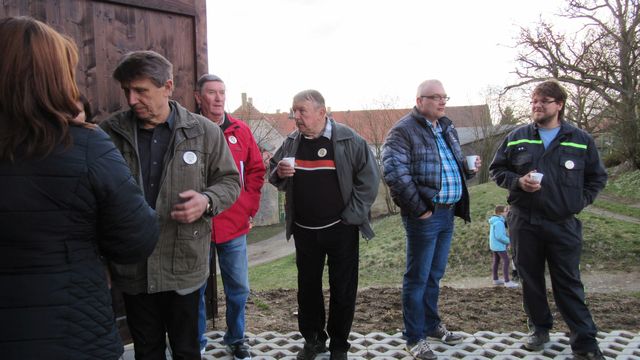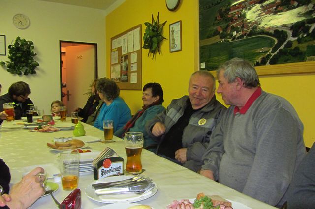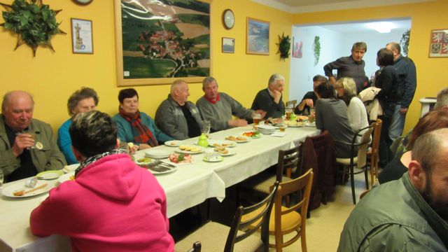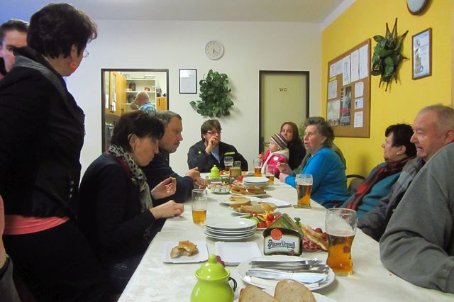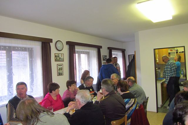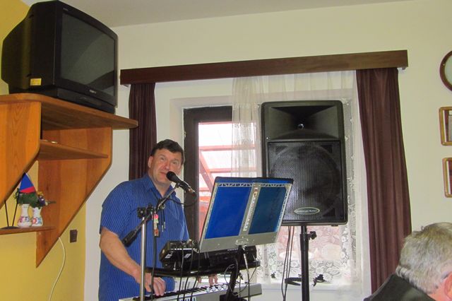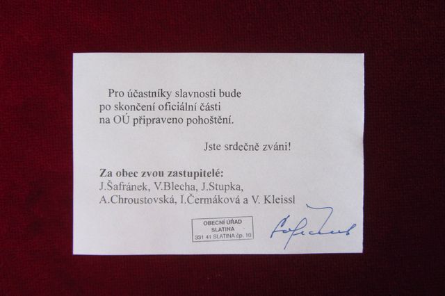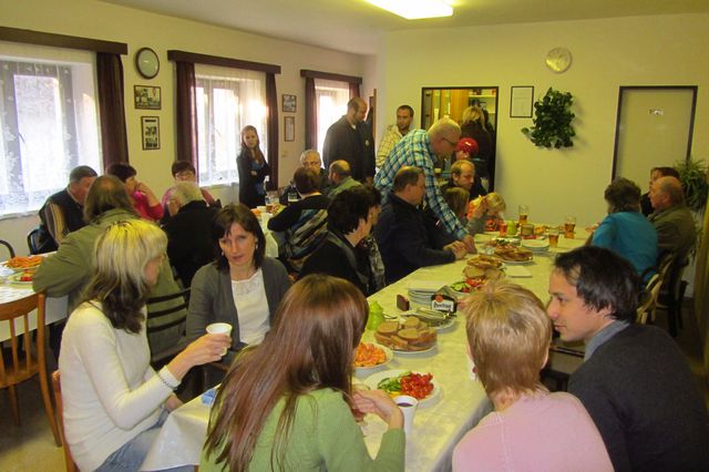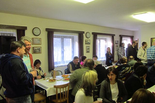 Druhá část oslavy probíhala na OÚ, kde bylo všem účastníkům podáno pohoštění a k poslechu hrál Jaroslav Chroustovský.