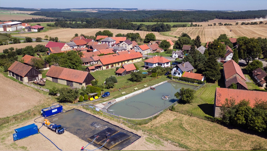 Odbahnění požární nádrže - rybníka nám prováděla fi.PLOSAB. Bude dopsáno..