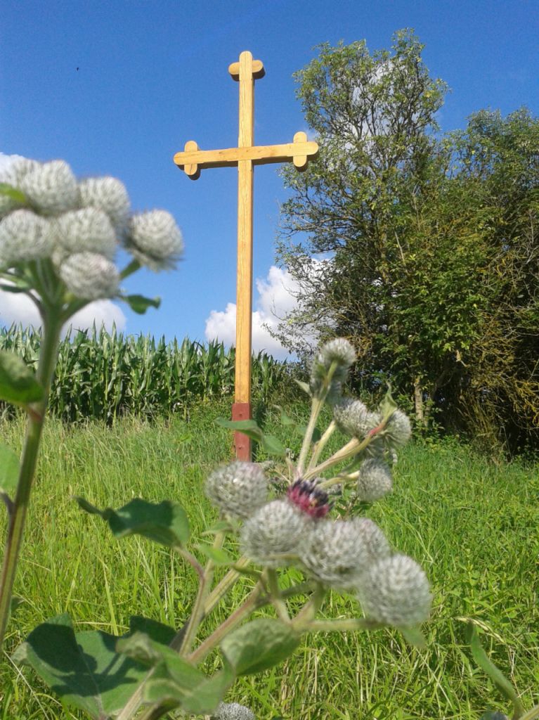 Na připomínku občanů, že dříve bývaly na začátku a na konci obce kříže, se zastupitelstvo rozhodlo kříže obnovit. Starosta kříže nakreslil a nechal je vyrobit u místního truhláře Petra Helebranta. Kříže upevnili do železné výztuže a zabetonovali do země.