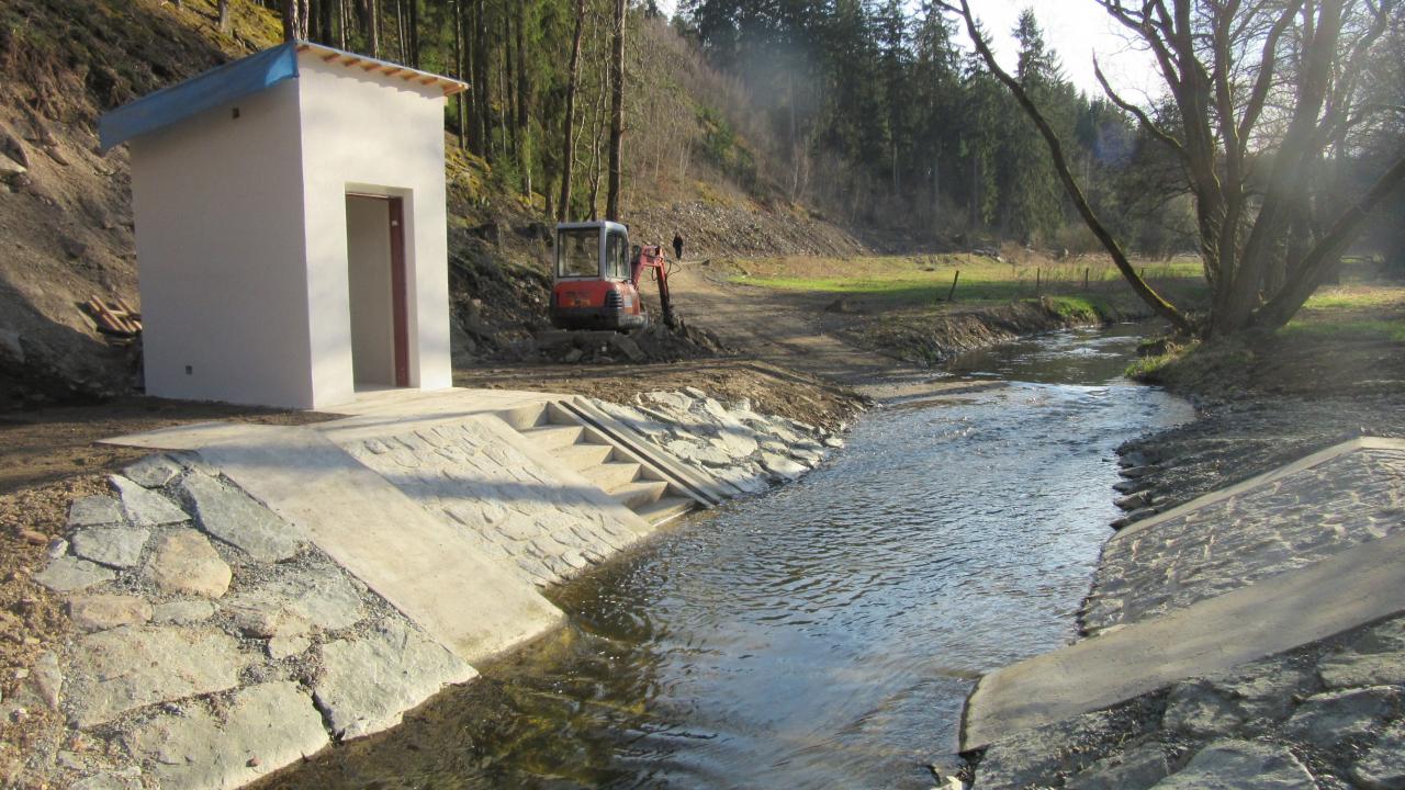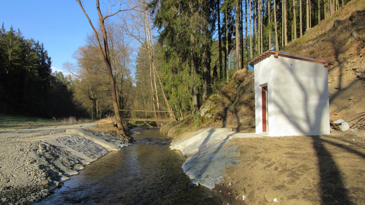 Po dokončení budou ČHMÚ Plzeň dálkově přenášeny informace o průtoku vody v Javornici. Najdete ji 500m pod Uhrovic mlýnem.